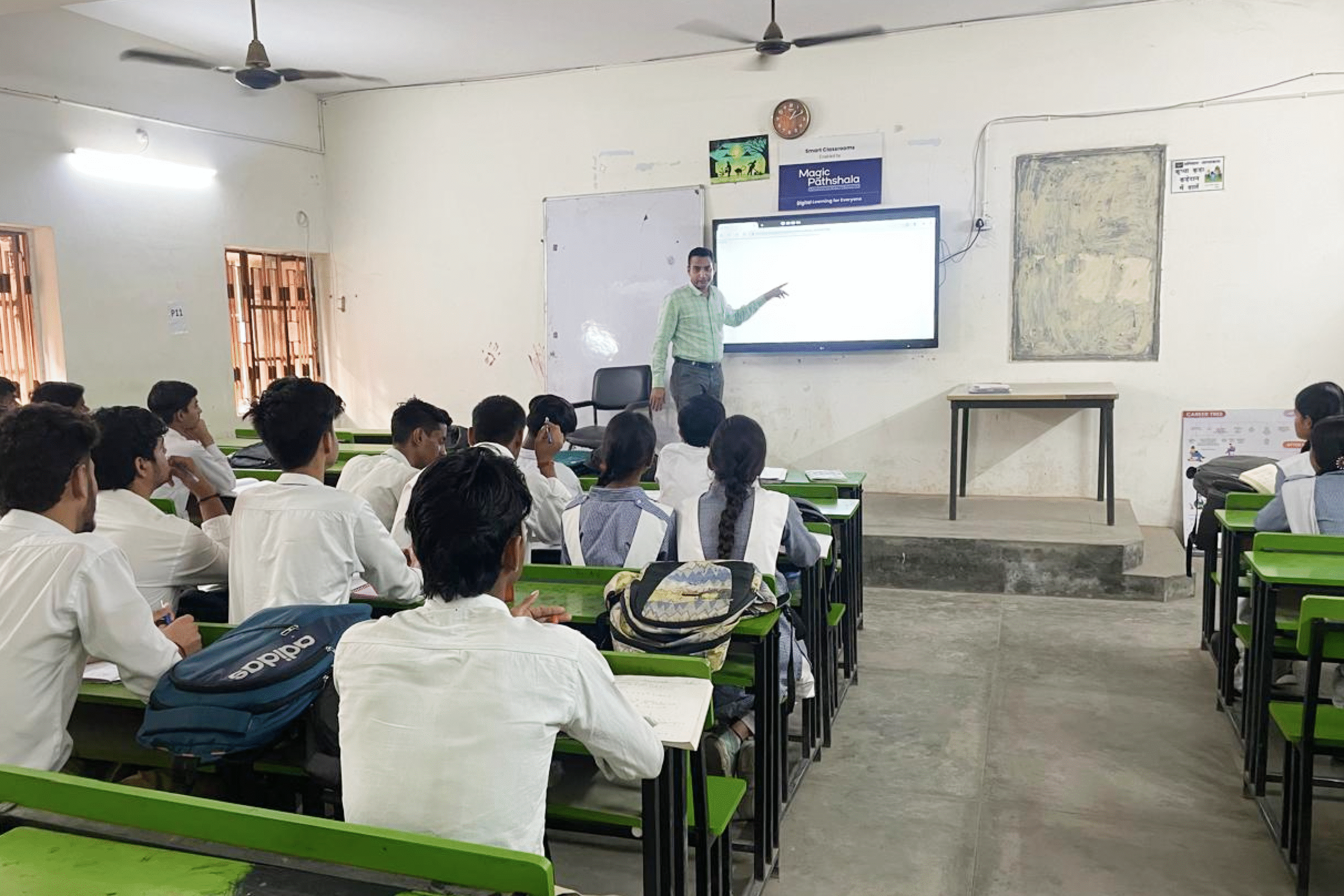 The school has Smart boards equipped with multimedia resources in the classrooms for classes Nursery to XII .